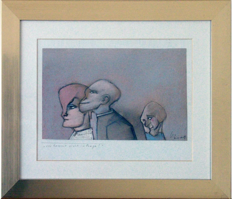 2001, Pastell mit Passepartout, Rahmen goldfarben, 16,6 x 15,1 cm