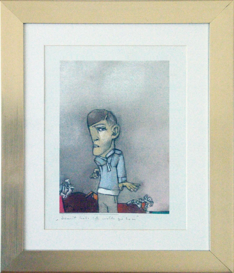 2001, Pastell mit Passepartout, Rahmen blau, 17,1 x 15,4 cm